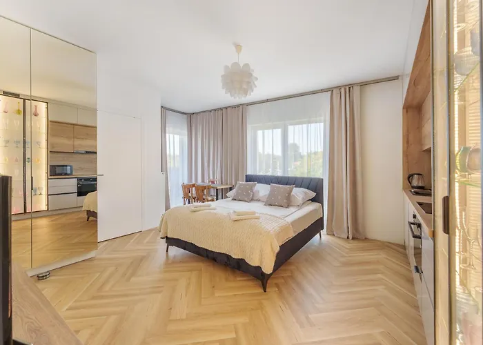 Apartamenty Promenada - Fredry 2 wyposażony jest w ekspres do kawy/herbaty, lodówkę i piekarnik. Od tego apartamentu do przystanku autobusowego Fredry w zasięgu wzroku.